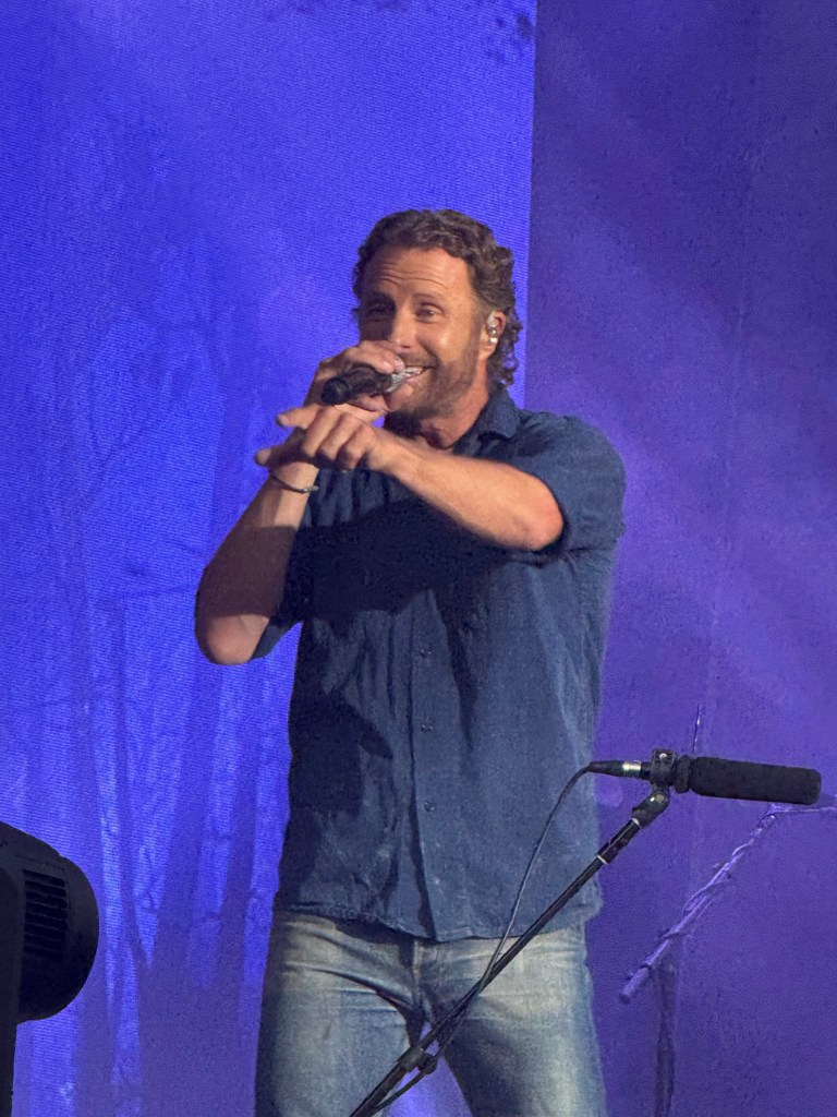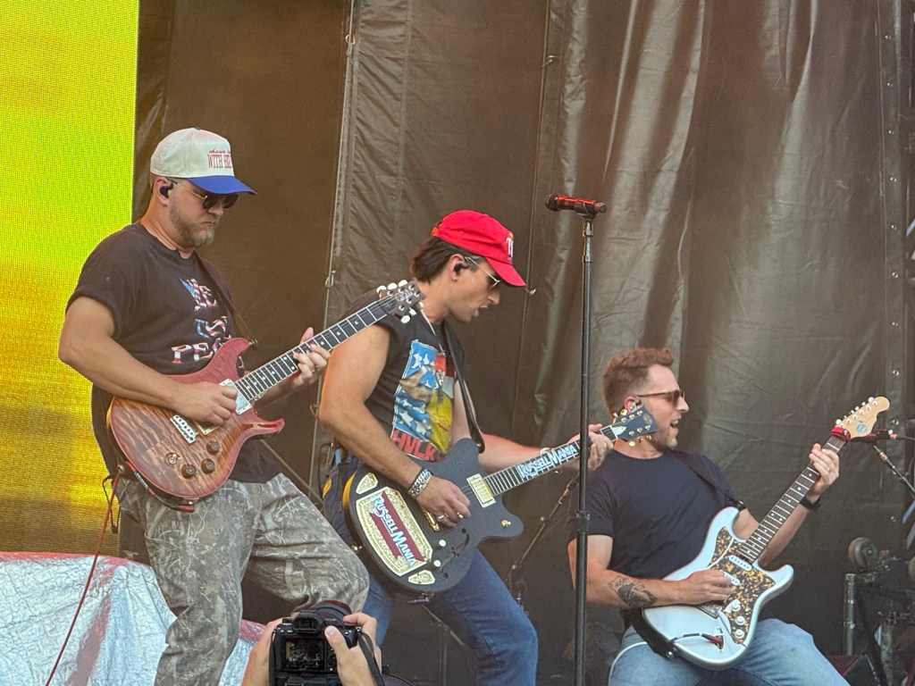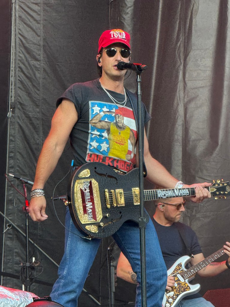 This was my first time seeing Russell Dickerson and I found him to be very entertaining. He was very charismatic, hamming it up for the cameras, and having a great time. Originally from Franklin, this Nashville native said he’s always wanted to play the 4th of July bash. And he totally lived it up onstage. He delivered a high energy 50-minute set that included such hits as “Yours”, “Blue Tacoma”, “Every Little Thing”, and “Happens to Me”. At one point a giant figure joined him onstage to dance. He also threw out shirts to the crowd.