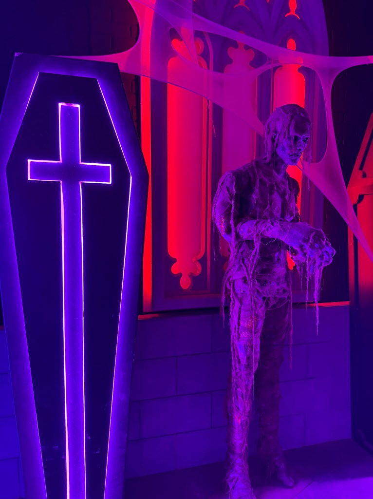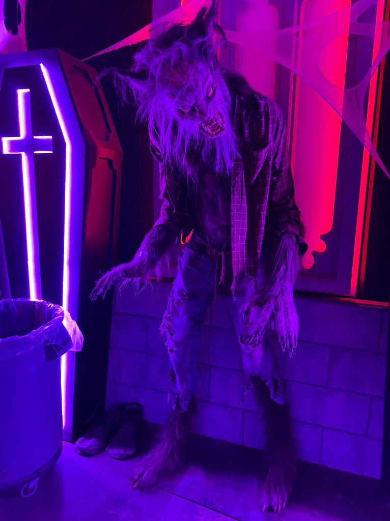 The first was modeled after the hit show Stranger Things, Season 5 by the looks of it. There was a guitar player on top of a school bus playing the theme song. We were greeted at the door by a young guy in his Hellfire club t-shirt and welcomed to the “Upside down”.